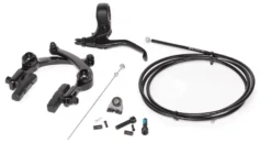The BMX Saftey Kit is a set of basic safety parts, including a complete front brake, reflectors, and a chin guard/chain guard.