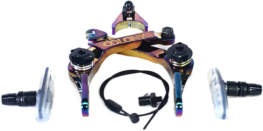 The Brethren BMX Brake Kit by Colony is a u-brake that can be installed both in front or at the rear end. If you’re going to install it in the front, make sure you have a brake-compatible fork with integrated brake mounts.