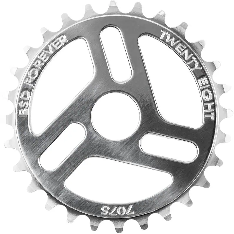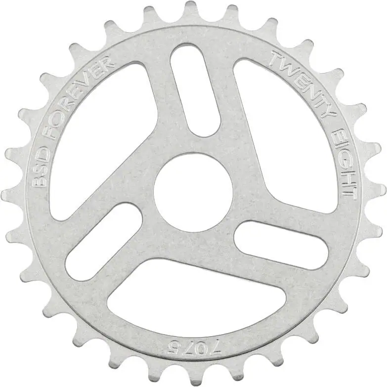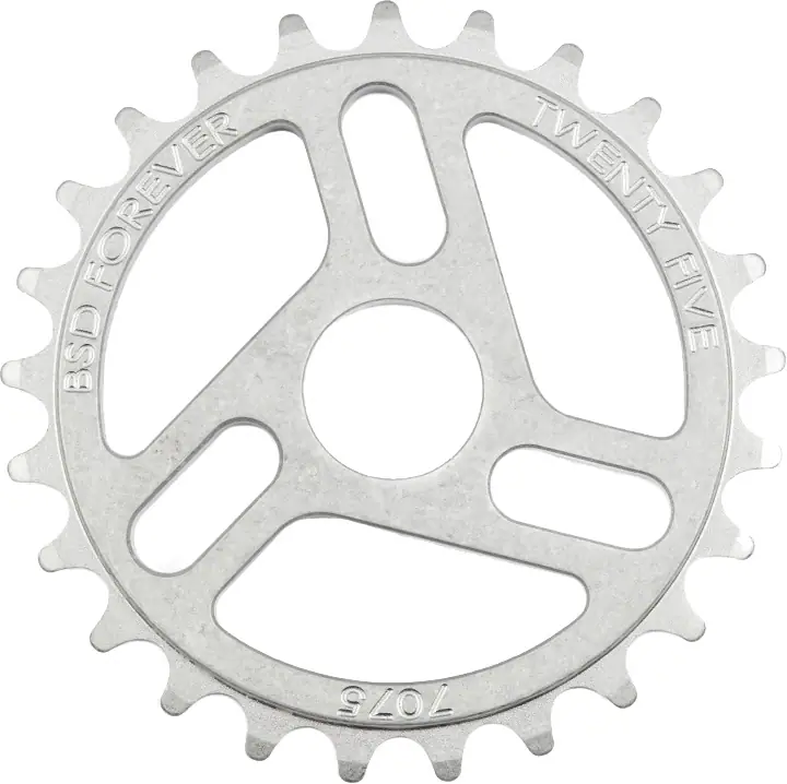 El Superlite Freestyle de BSD es un piñón de BMX de alto rendimiento para bicicletas de freestyle. Viene en versiones de 25T y 28T. Elija un piñón más grande con más dientes si desea obtener mayores velocidades máximas. Sin embargo, si quieres pedalear sin esfuerzo y mejorar la aceleración, entonces el piñón más pequeño debería ser tu elección. La cantidad de dientes influye en el peso del piñón: menos dientes equivale a un piñón más ligero y viceversa. Así que, si lo que buscas es ligereza, elige el piñón con menos dientes. Este piñón de BSD está diseñado con un agujero estándar de 24 mm e incluye adaptadores para husillos de 19 mm y 22 mm para un ajuste fácil y casi universal.