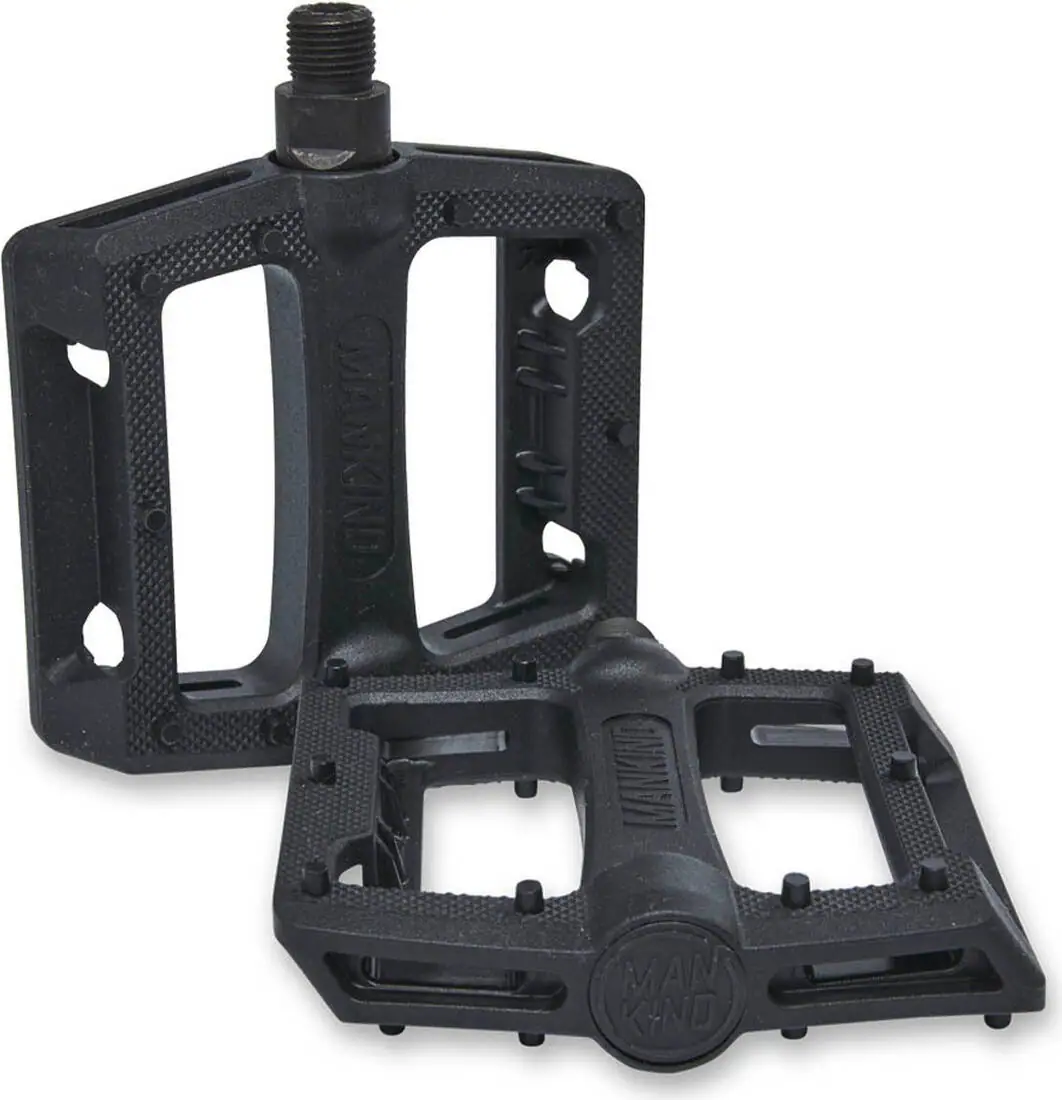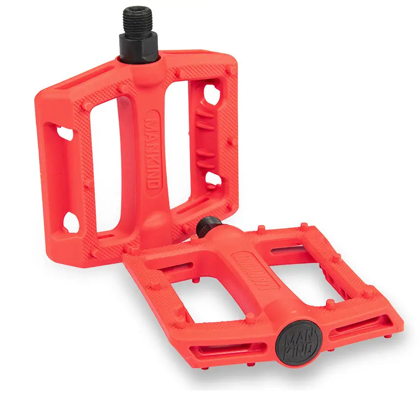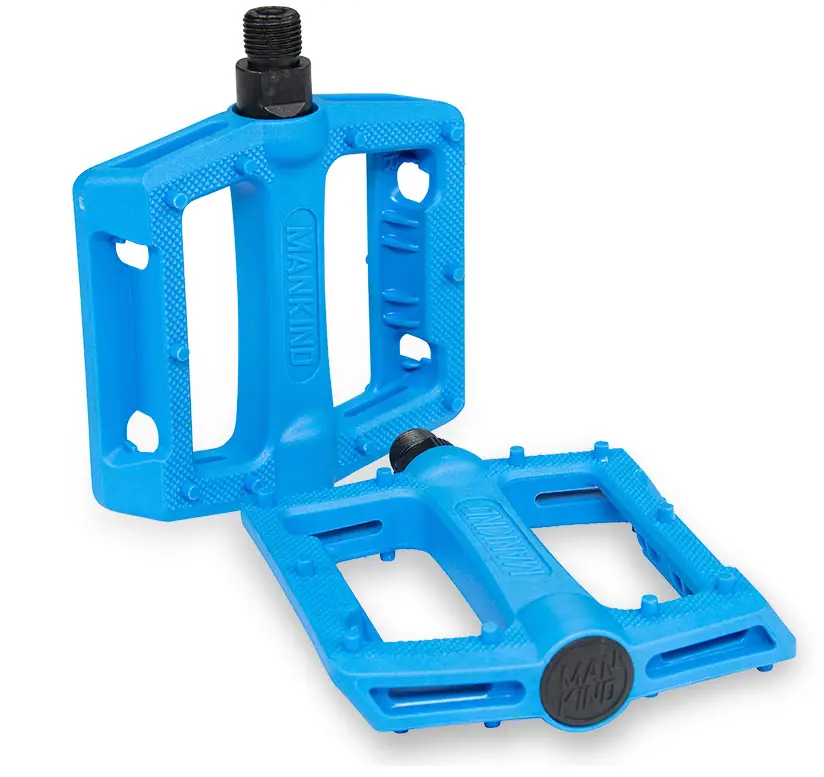 Los Mankind de Control son pedales de BMX de freestyle con un diámetro de eje de 9/16″, lo que los hace compatibles con bielas de dos y tres piezas. Están hechas de plástico, lo que tiene la ventaja de ser ligeras a la vez que se deslizan con mayor facilidad cuando se realizan grinds con los pedales.