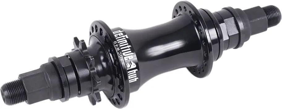 El Definitive Trasero de Shadow es un buje de casete diseñado para ruedas de BMX de freestyle. Con este buje será posible montar una rueda muy resistente con 36 radios. Los bujes con ejes macho como éste se ajustan a las punteras con una tuerca.