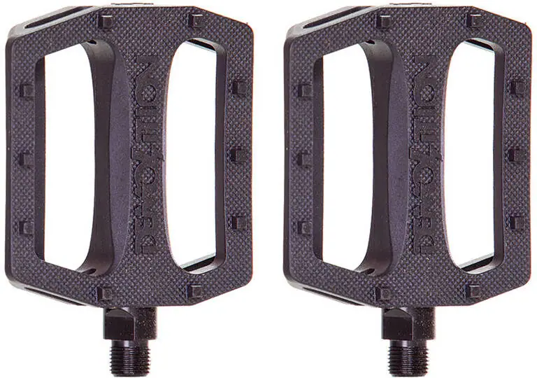 Los Demolition de Trooper son pedales de BMX de freestyle con un diámetro de eje de 9/16″, lo que los hace compatibles con bielas de dos y tres piezas. Están hechas de plástico, lo que tiene la ventaja de ser ligeras a la vez que se deslizan con mayor facilidad cuando se realizan grinds con los pedales.