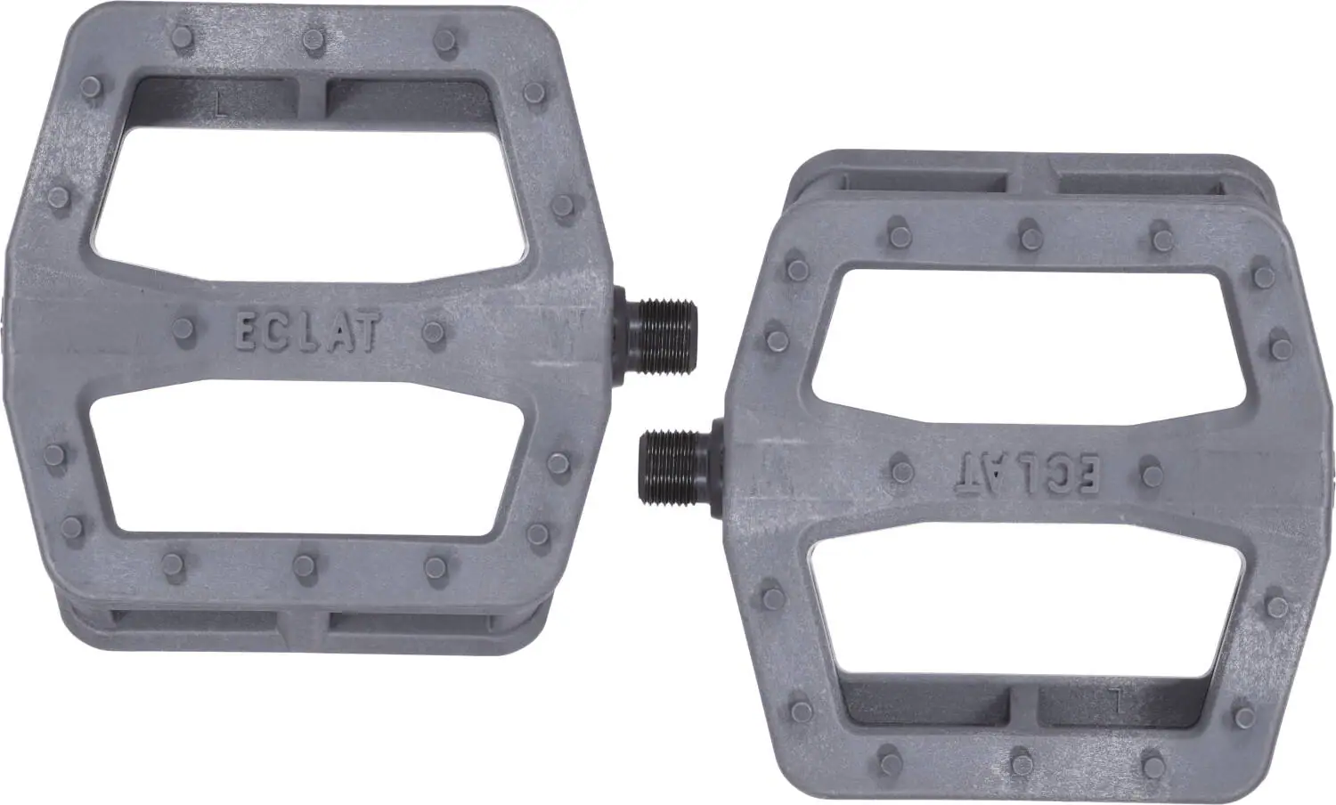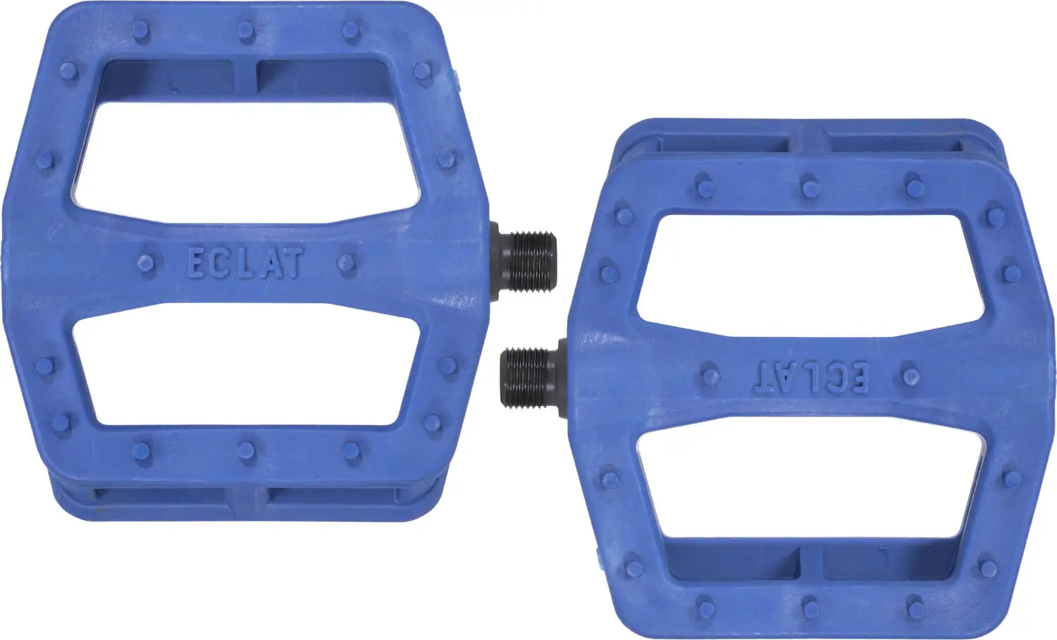 Los Éclat de Centric son pedales de BMX de freestyle con un diámetro de eje de 9/16″, lo que los hace compatibles con bielas de dos y tres piezas. Están hechos de una combinación de nylon y fibra de vidrio, lo que hace que los pedales sean ligeros, resistentes y capaces de deslizarse como la mantequilla cuando los involucras en tus grinds.