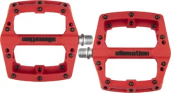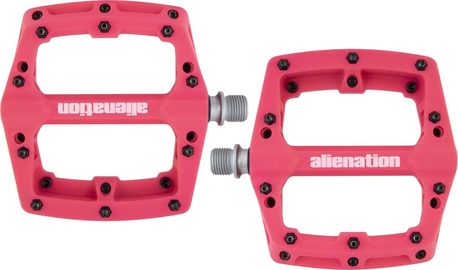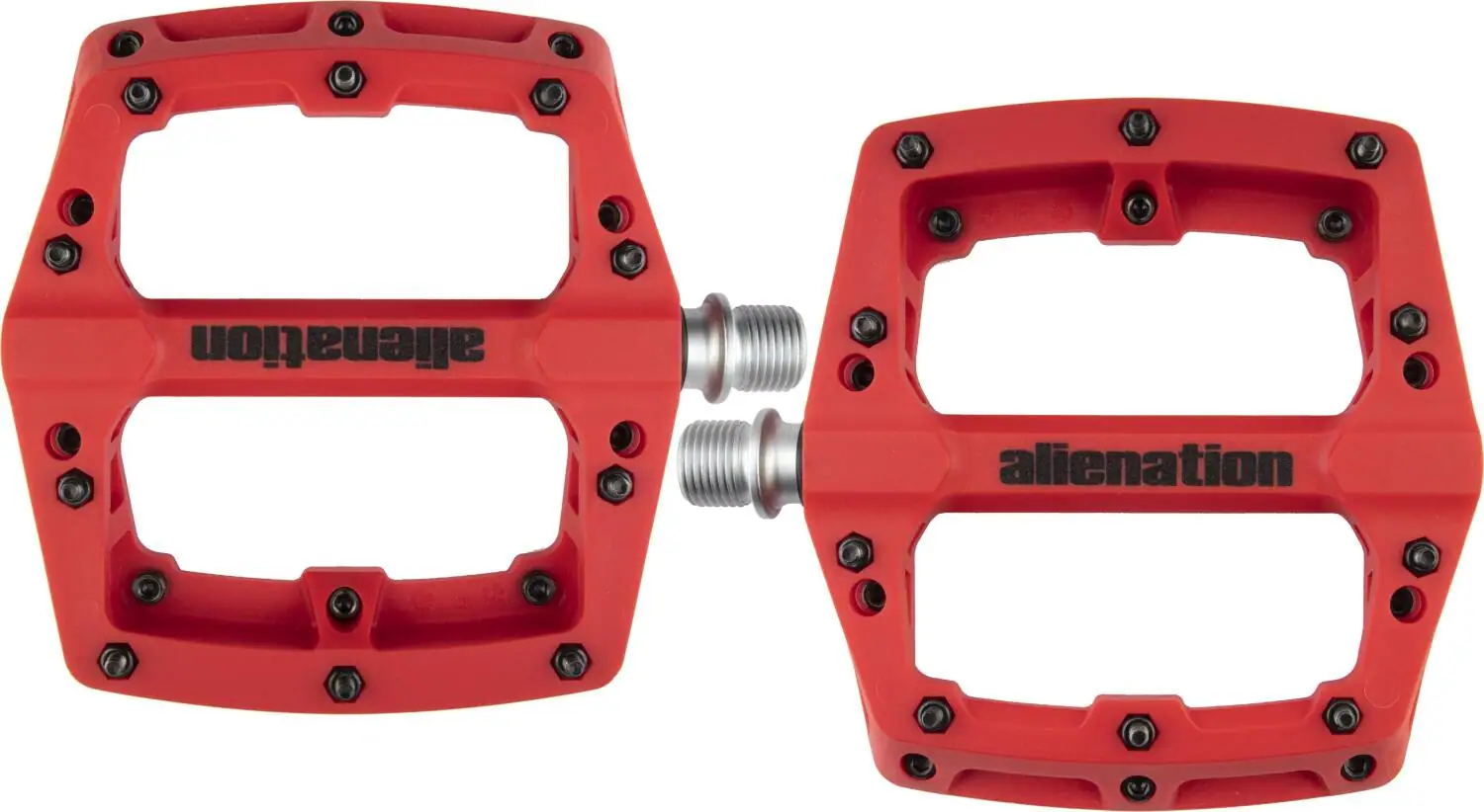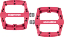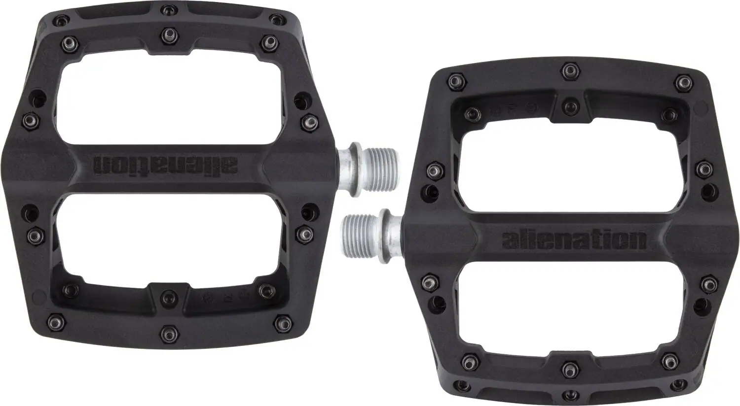 Los Alienation de Foothold son pedales de BMX de freestyle con un diámetro de eje de 9/16″, lo que los hace compatibles con bielas de dos y tres piezas. Están hechas de plástico, lo que tiene la ventaja de ser ligeras a la vez que se deslizan con mayor facilidad cuando se realizan grinds con los pedales. Con plataformas grandes como éstas, también es más fácil coger los pedales después de hacer trucos que requieran que tus pies abandonen los pedales. Además, la forma cóncava de la plataforma te ayudará a mantener los pies en su sitio sobre el pedal para una mejor experiencia de conducción.