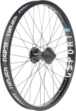 Elite 20″ de GSport es una rueda delantera para bicis BMX Freestyle. GSport ha diseñado Elite 20″ con una llanta de doble pared para riders que necesitan una rueda delantera que pueda resistir tanto los impactos verticales como laterales de trucos y saltos. Los rodamientos sellados requieren muy poco mantenimiento y son resistentes a la suciedad, haciendo que una rueda delantera de GSport sea ideal para uso en exteriores.