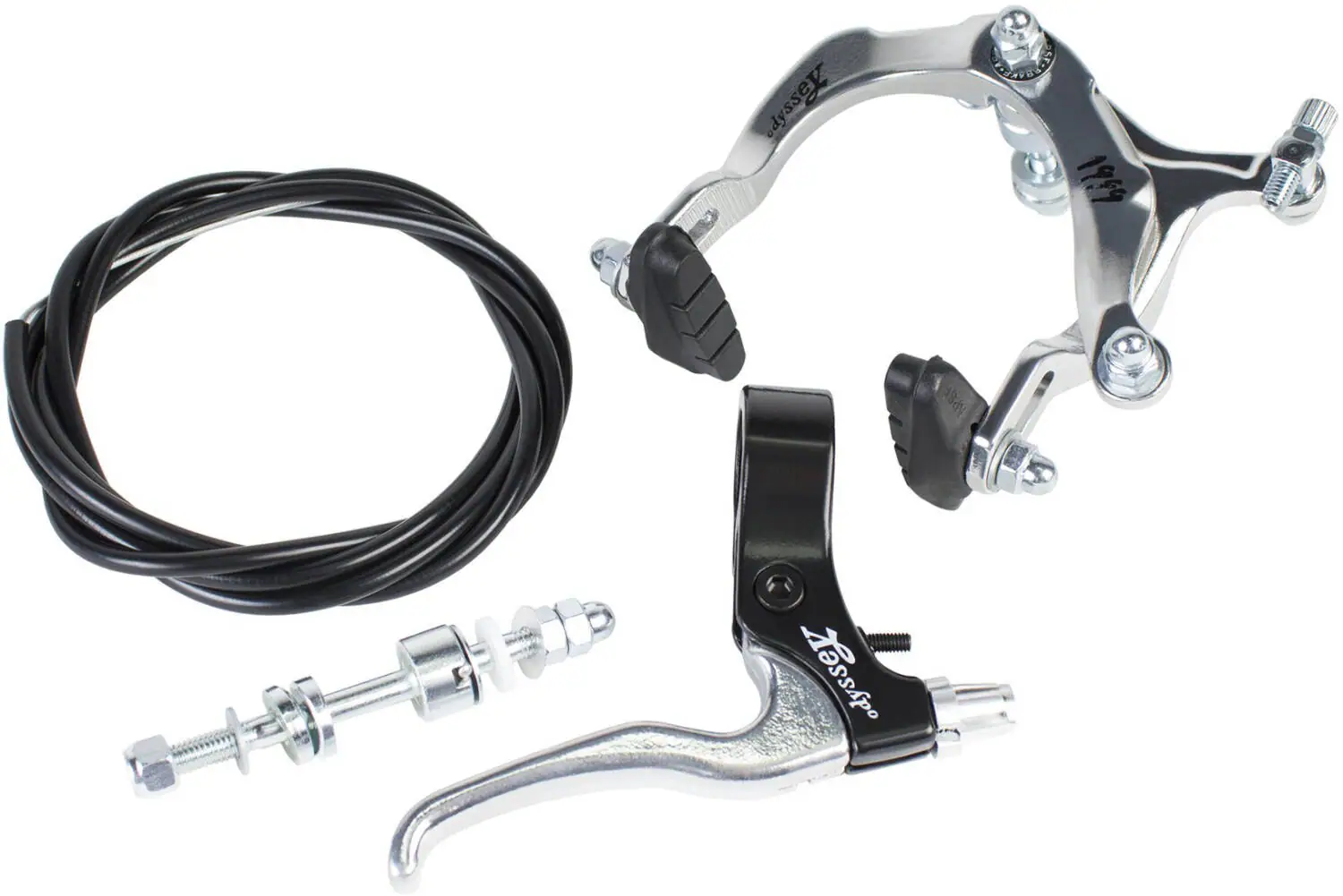 It includes pivot bolts for both front and rear mounting, brake cable, universal caliper, and a light brake lever.