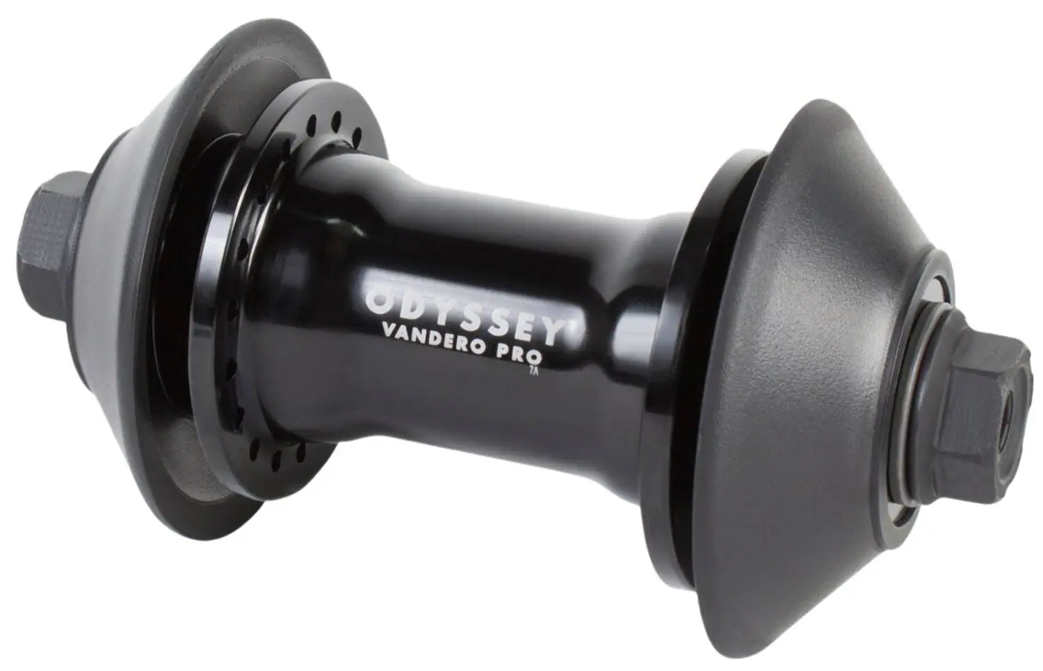 Este es el buje Vandero Pro Frente de Odyssey para su rueda de BMX de freestyle. Con este buje será posible montar una rueda muy resistente con 36 radios. Los ejes hembra como este tienen un roscado interno, y se ajustarán a las punteras con un tornillo.