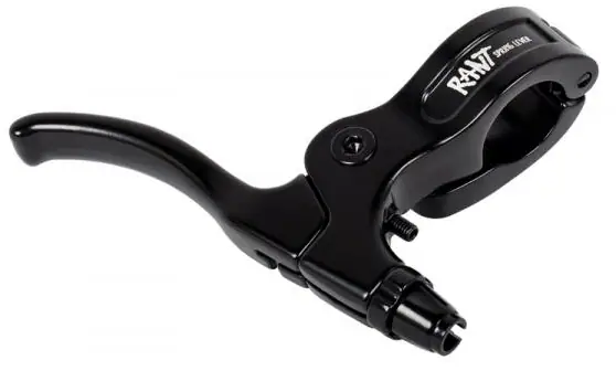 Esta manilla de freno de gama media para BMX de Rant se puede activar con dos dedos y viene con una abrazadera articulada que facilita su instalación.