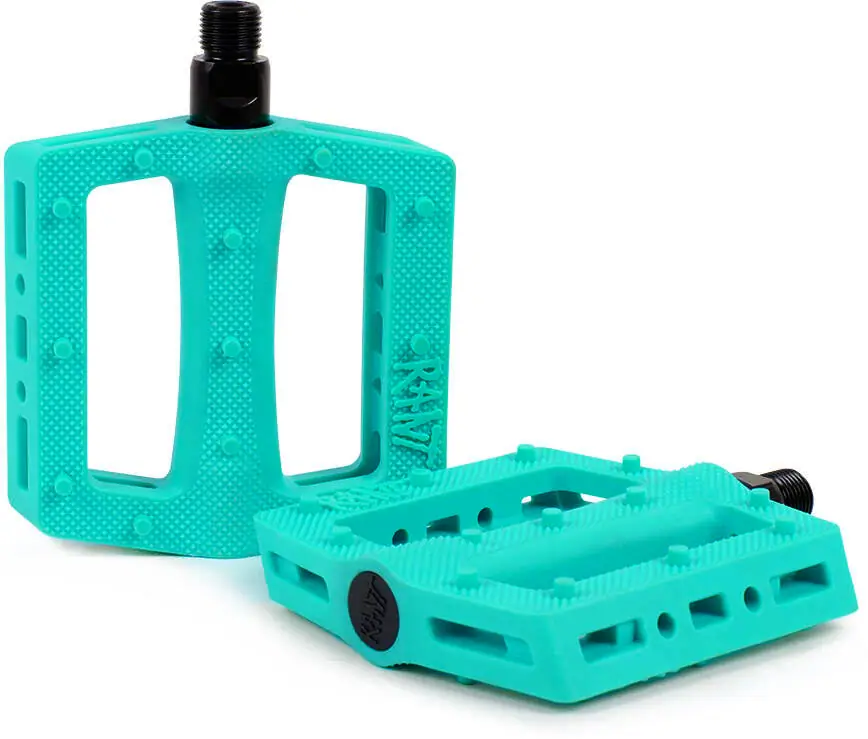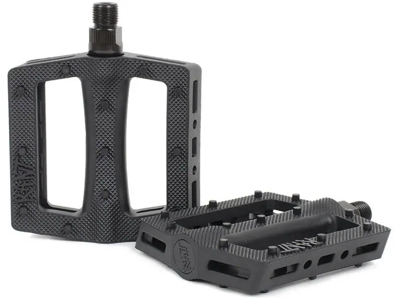 Los Rant de Trill son pedales de BMX de freestyle con un diámetro de eje de 9/16″, lo que los hace compatibles con bielas de dos y tres piezas. Están hechos de una combinación de nylon y fibra de vidrio, lo que hace que los pedales sean ligeros, resistentes y capaces de deslizarse como la mantequilla cuando los involucras en tus grinds.