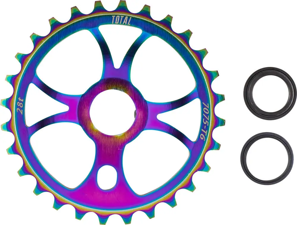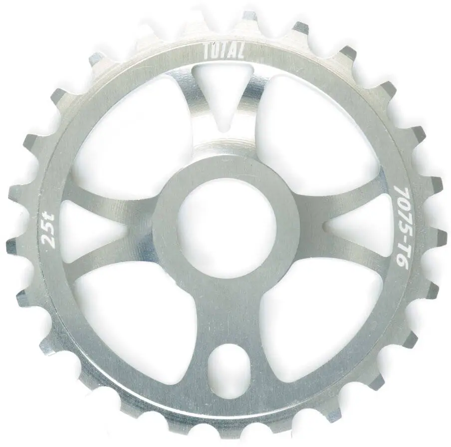 Este piñón BMX de Total BMX de 25 dientes brilla con luz propia en lo referente al diseño y al material de fabricación. Aluminio 7075, un metal de gran calibre que ha ayudado a los chicos de Total a desarrollar una corona BMX muy ligera.
