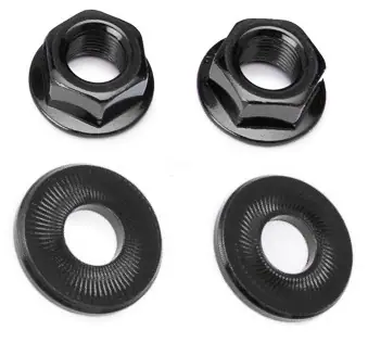 Las tuercas de eje Salt BMX están fabricadas con CNC de acero Chromoly para que duren mucho más tiempo que otras piezas. Espaciadores incluidos