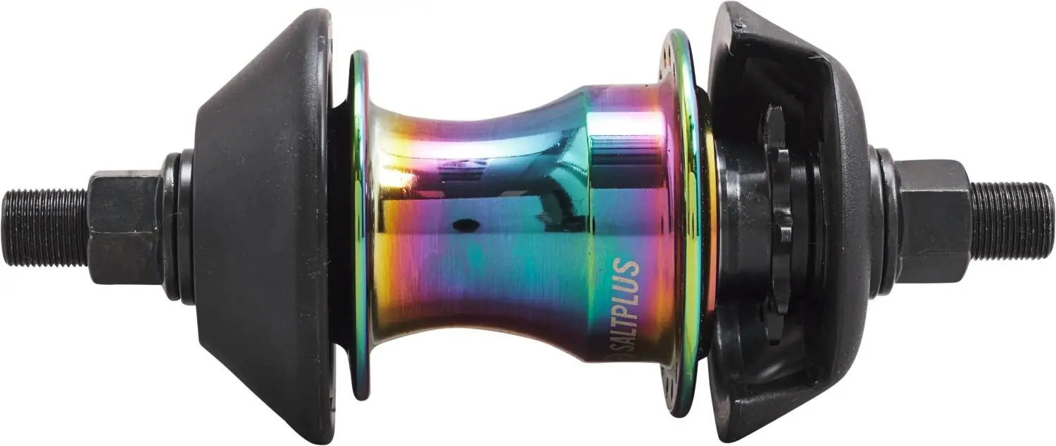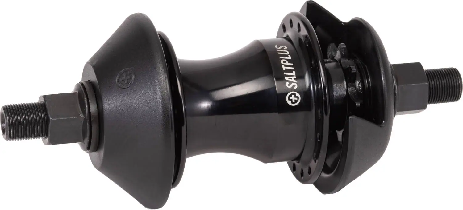 Esta es el buje freecoaster Plus Vertex de Salt diseñado para ruedas de BMX de freestyle. Como no es necesario pedalear cuando se va hacia atrás, se obtiene más libertad para avanzar en los trucos de fakie. Con este buje será posible montar una rueda muy resistente con 36 radios. Los bujes con ejes macho como éste se ajustan a las punteras con una tuerca.