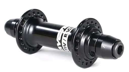 Este es el buje Reactiv Frente de Stay Strong para su rueda de BMX de freestyle. Con este buje será posible montar una rueda muy resistente con 36 radios. Los ejes hembra como este tienen un roscado interno, y se ajustarán a las punteras con un tornillo.