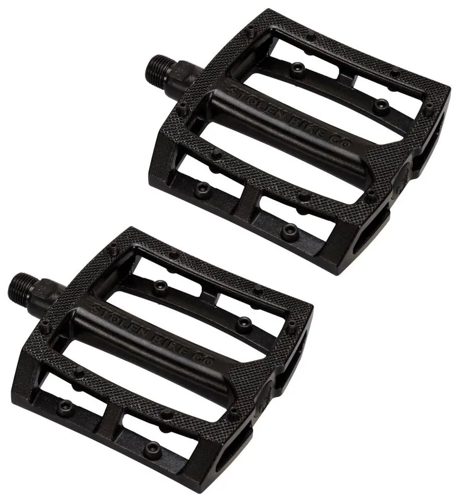 Los Stolen de Throttle Loose Ball Auminum son pedales de BMX de freestyle con un diámetro de eje de 9/16″, lo que los hace compatibles con bielas de dos y tres piezas. Están hechos de una aleación muy duradera y fiable. Para mayor resistencia y durabilidad, el eje está hecho de acero cromado, que no se destruirá fácilmente. Al estar equipados con rodamientos de bolas sueltas, son óptimos para quienes no montan en barro y tierra. Con plataformas grandes como éstas, también es más fácil coger los pedales después de hacer trucos que requieran que tus pies abandonen los pedales.
