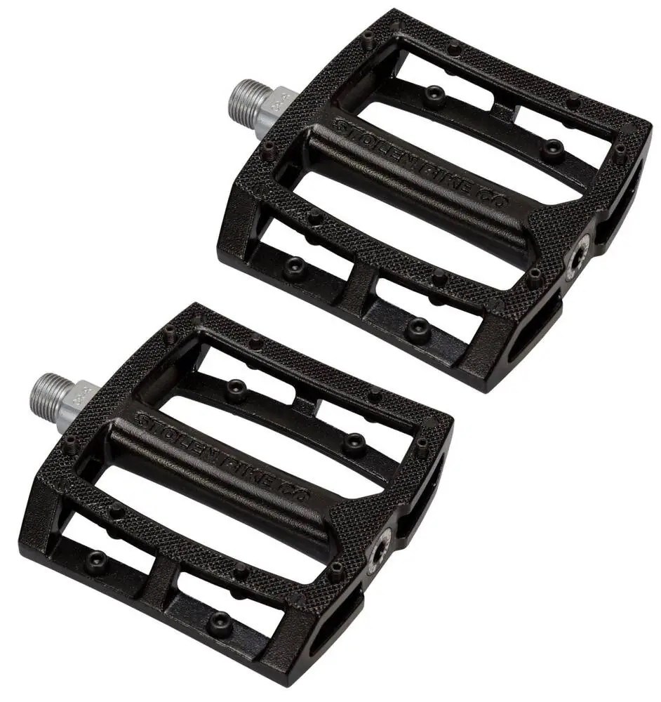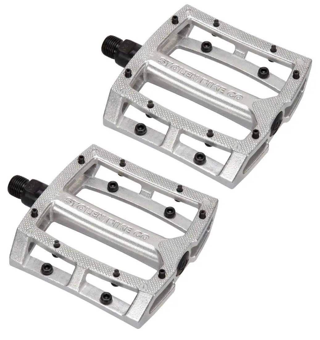 Los Stolen de Throttle Sealed Auminum son pedales de BMX de freestyle con un diámetro de eje de 9/16″, lo que los hace compatibles con bielas de dos y tres piezas. Están hechos de una aleación muy duradera y fiable. Para mayor resistencia y durabilidad, el eje está hecho de acero cromado, que no se destruirá fácilmente. Con estos pedales obtienes rodamientos sellados y súper suaves que requieren poco mantenimiento. Con plataformas grandes como éstas, también es más fácil coger los pedales después de hacer trucos que requieran que tus pies abandonen los pedales.