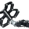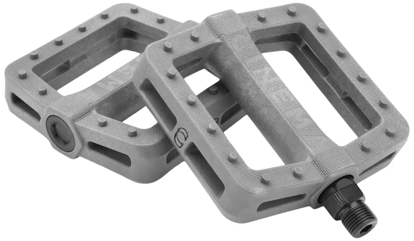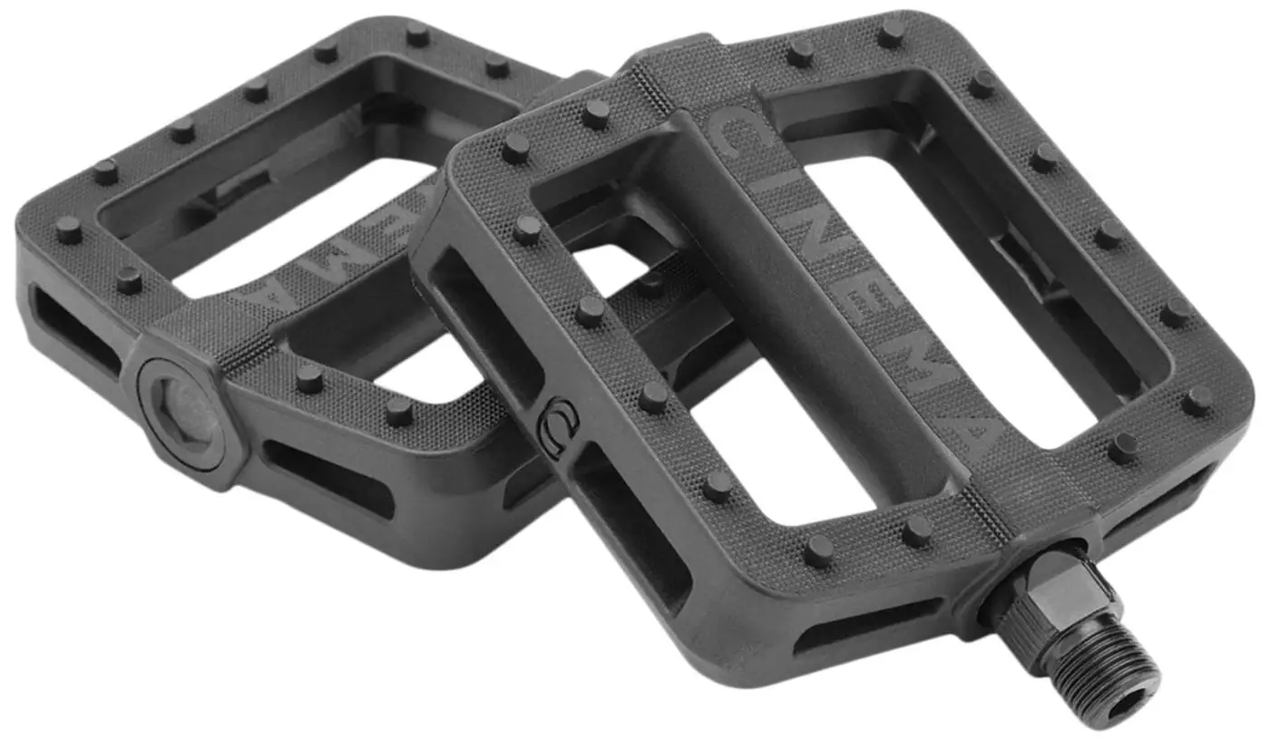 The Tilt Pedals by Cinema BMX features 16 traction pins per side and an overall micro-knurled surface. They’re designed with a slim body spinning on a beefy heat-treated Chromoly axle.