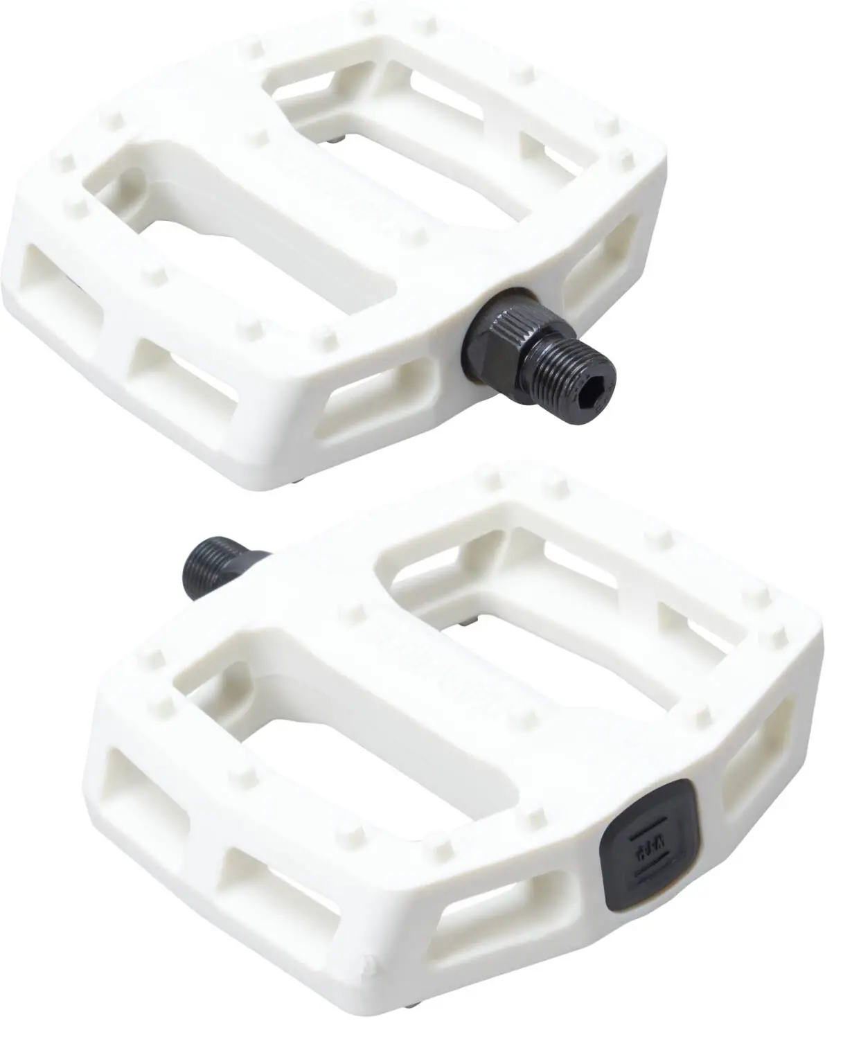 Los Wethepeople de Logic son pedales de BMX de freestyle con un diámetro de eje de 9/16″, lo que los hace compatibles con bielas de dos y tres piezas. Están hechos de una combinación de nylon y fibra de vidrio, lo que hace que los pedales sean ligeros, resistentes y capaces de deslizarse como la mantequilla cuando los involucras en tus grinds.