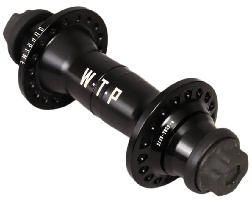 Este es el buje Supreme Frente de Wethepeople para su rueda de BMX de freestyle. Con este buje será posible montar una rueda muy resistente con 36 radios. Los ejes hembra como este tienen un roscado interno, y se ajustarán a las punteras con un tornillo.